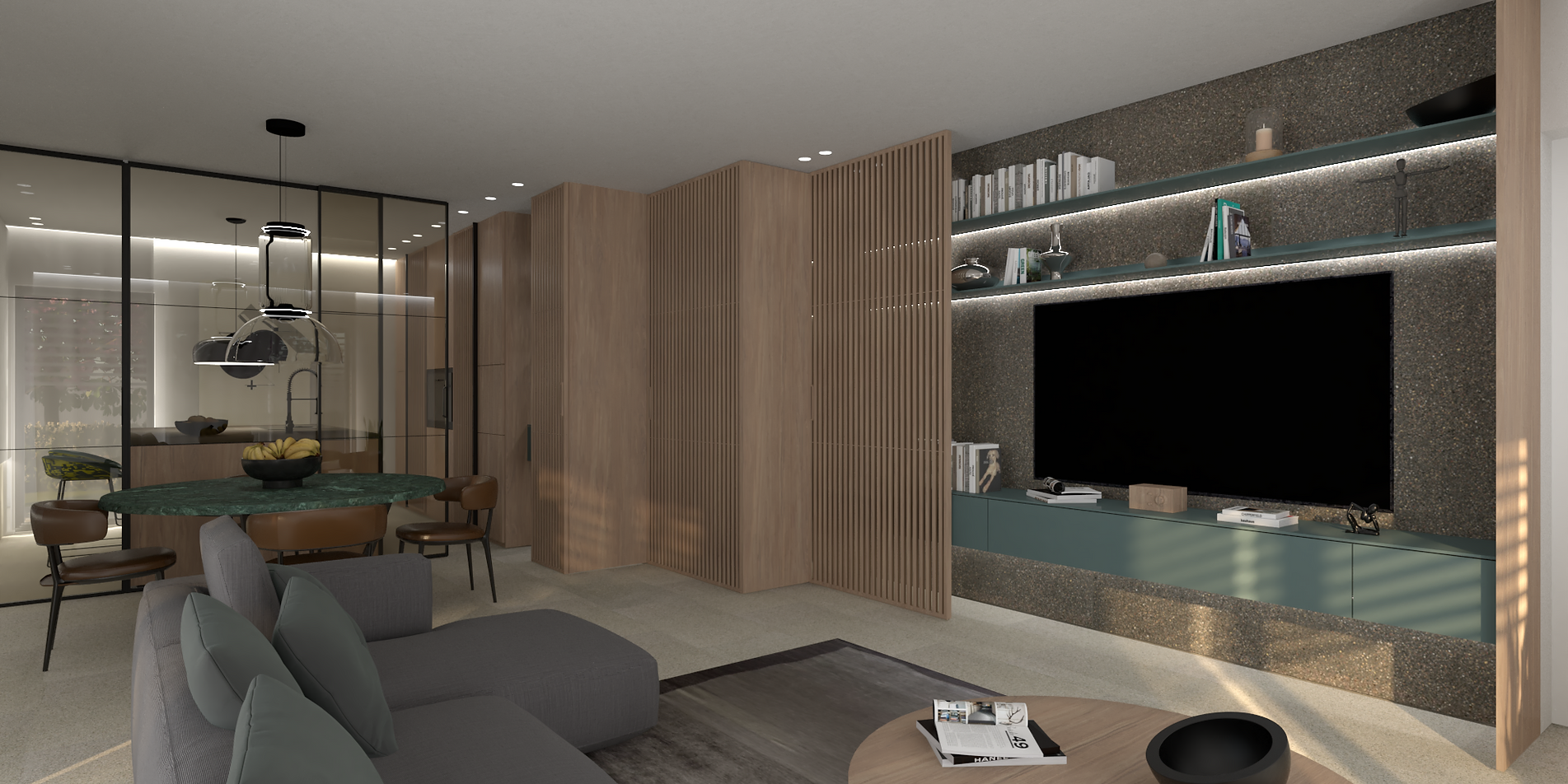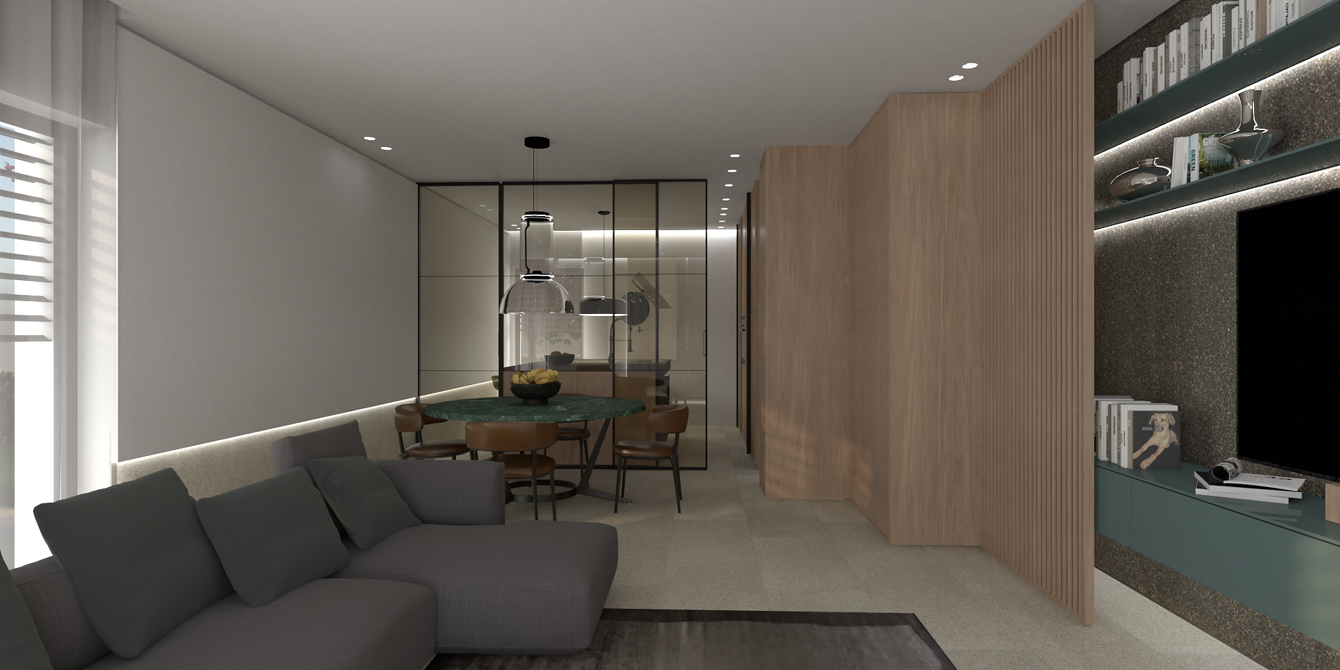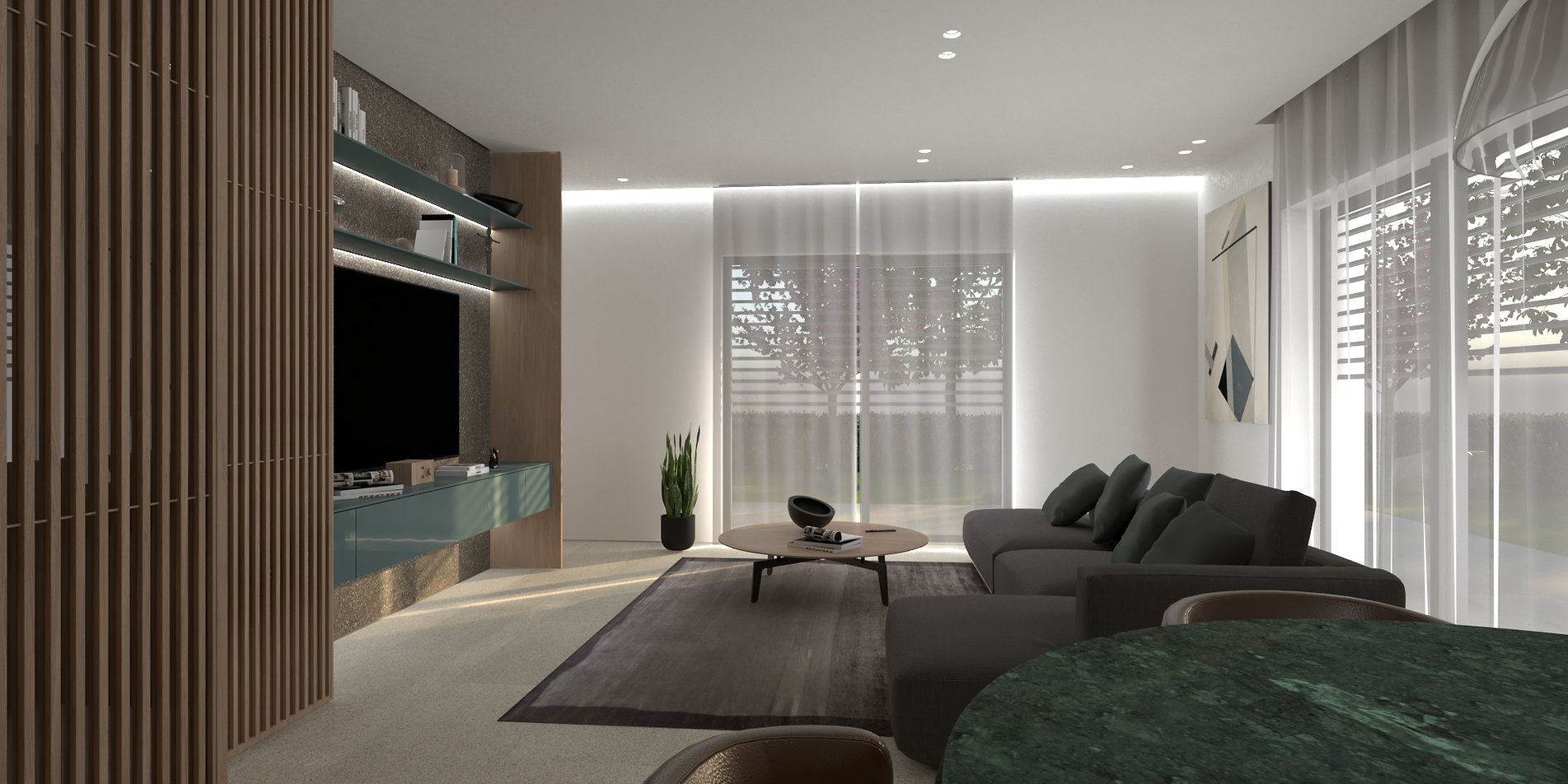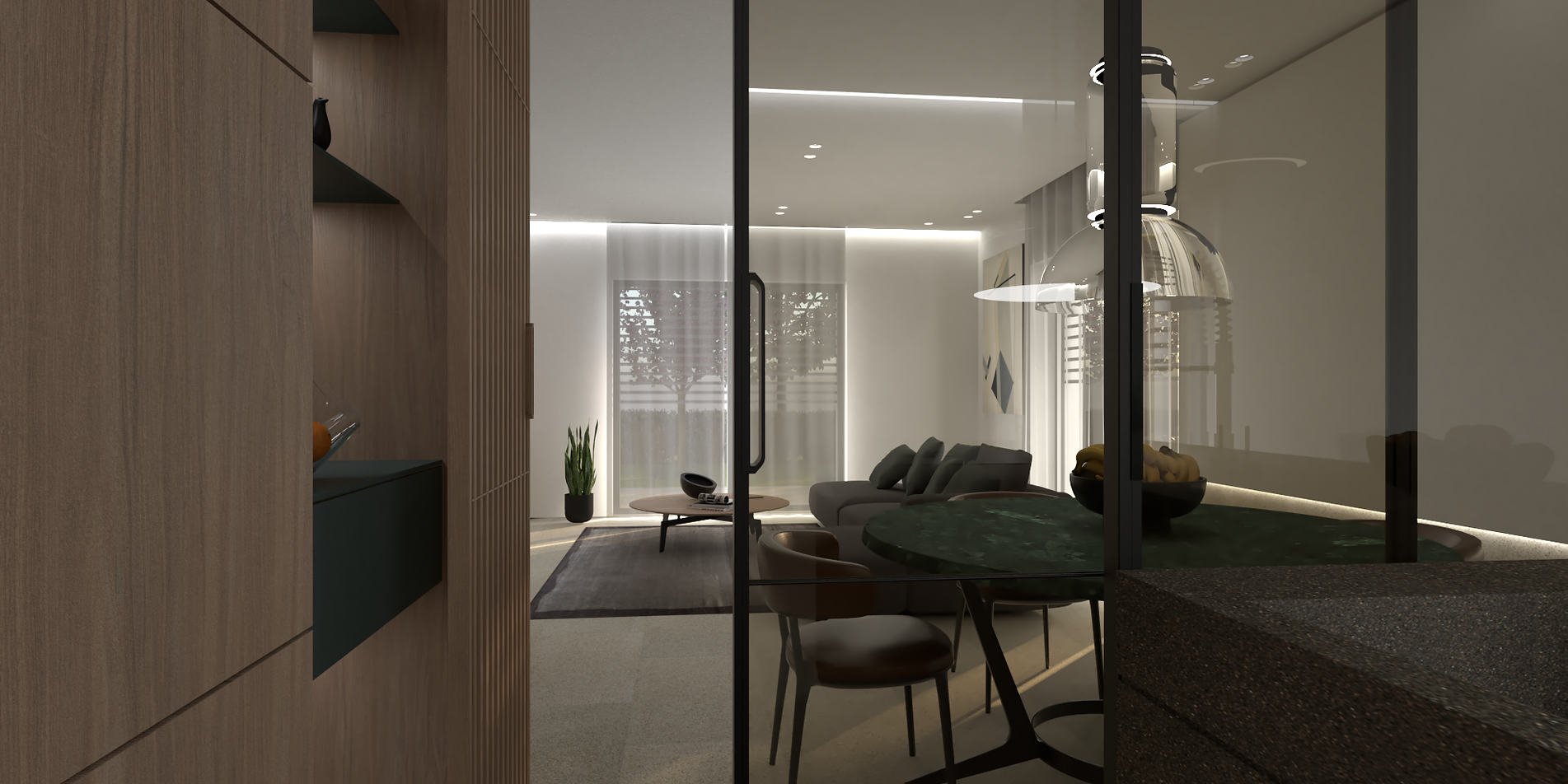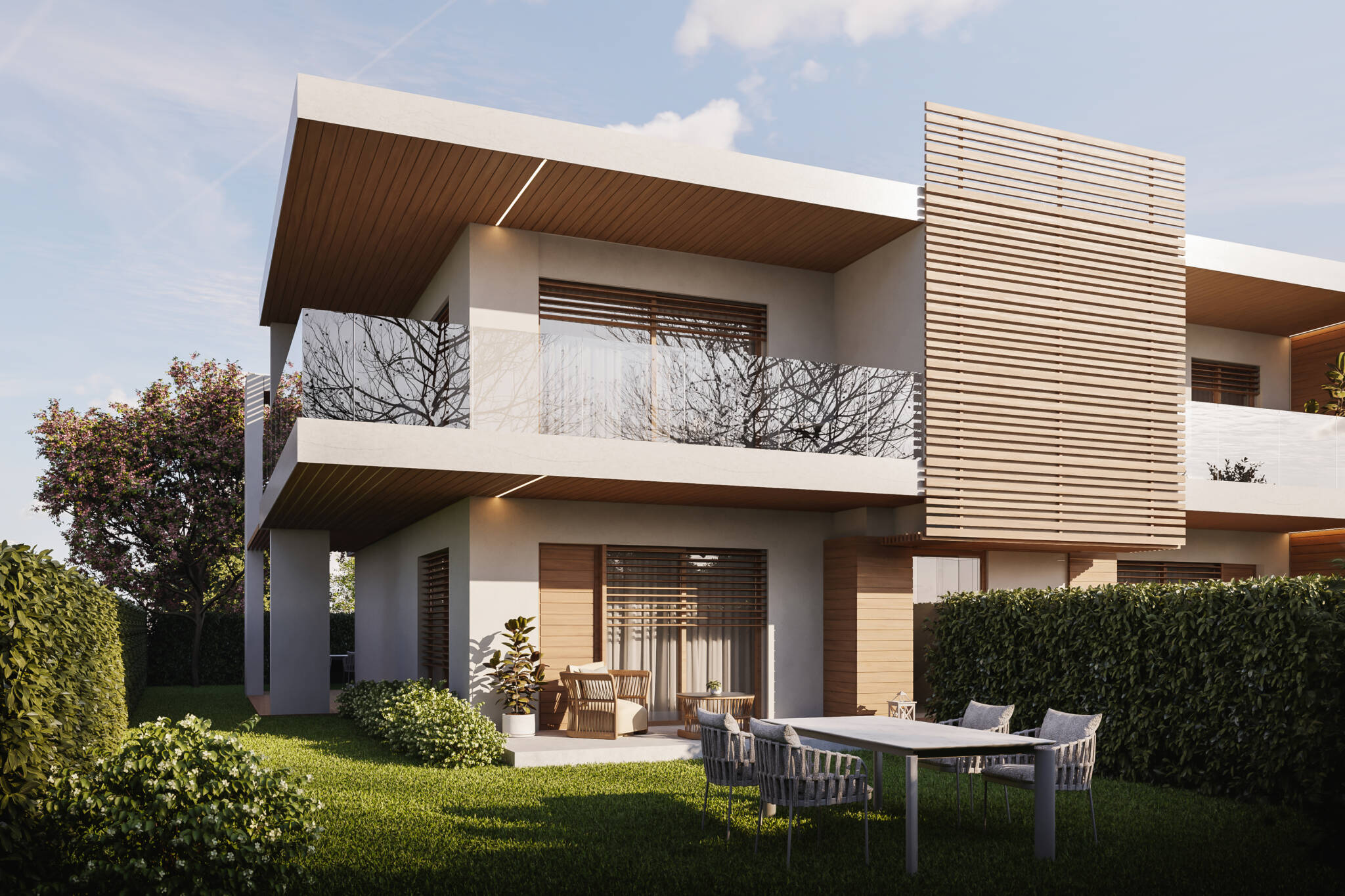 Le ampie vetrate termoacustiche garantiranno un ottimo apporto solare in inverno ed una protezione nel periodo estivo grazie alle ampie terrazze.
