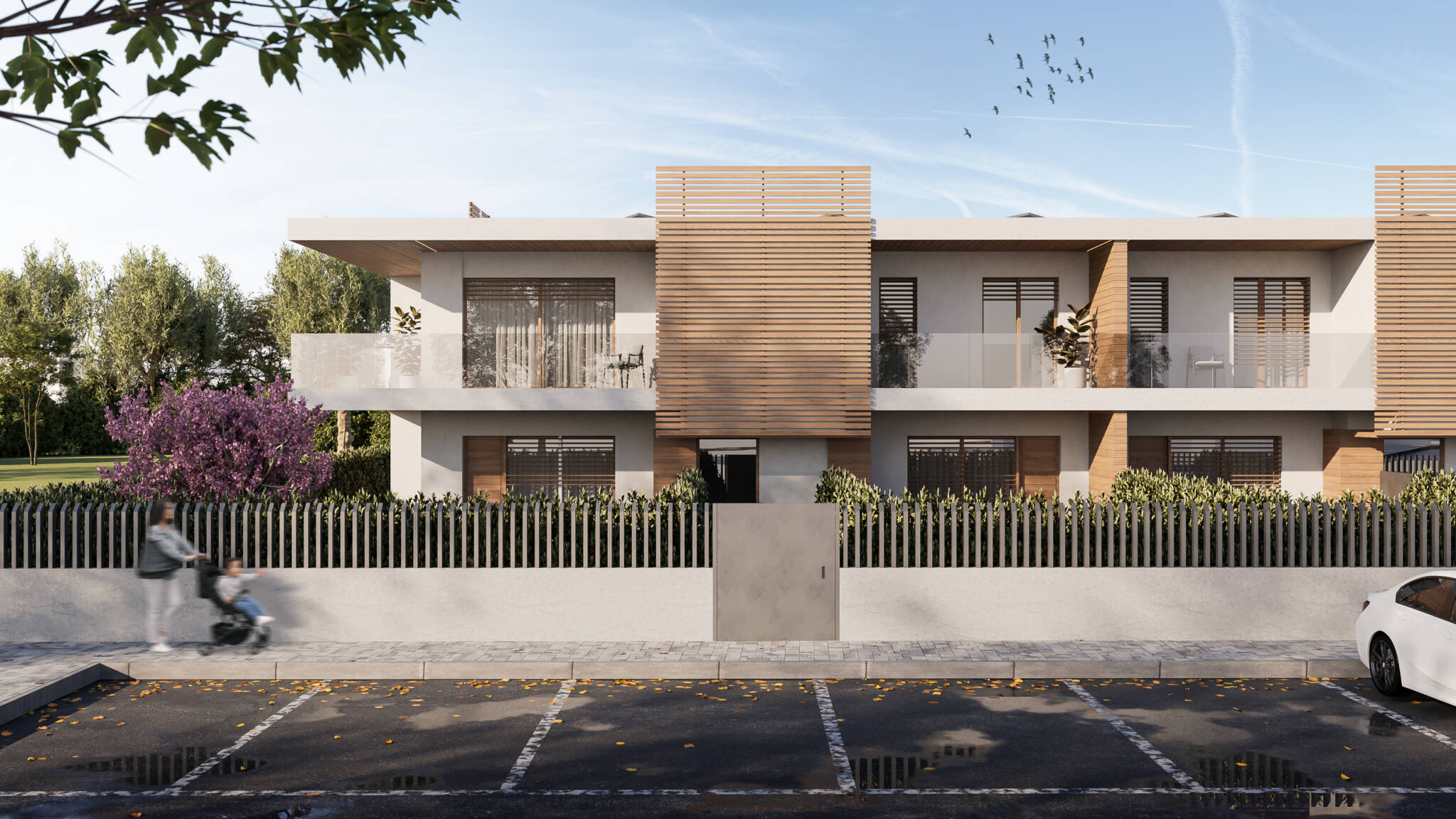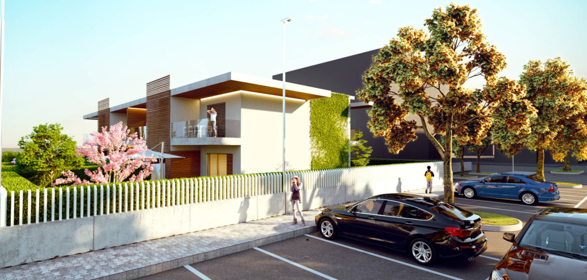 L’area che ospiterà i nuovi edifici è un residuo urbano tra edifici esistenti, per poter garantire massima funzionalità e privacy sono stati progettati due edifici separati da un viale alberato e parcheggi.