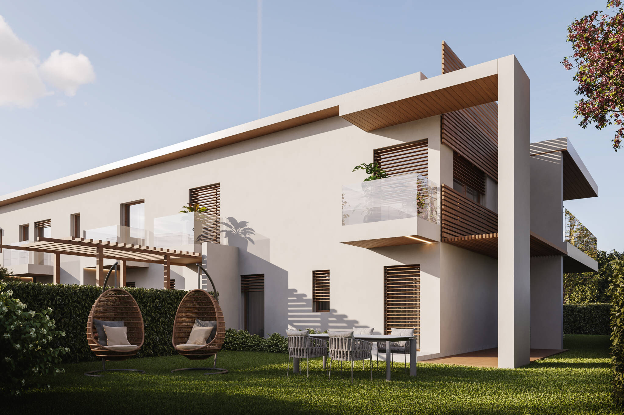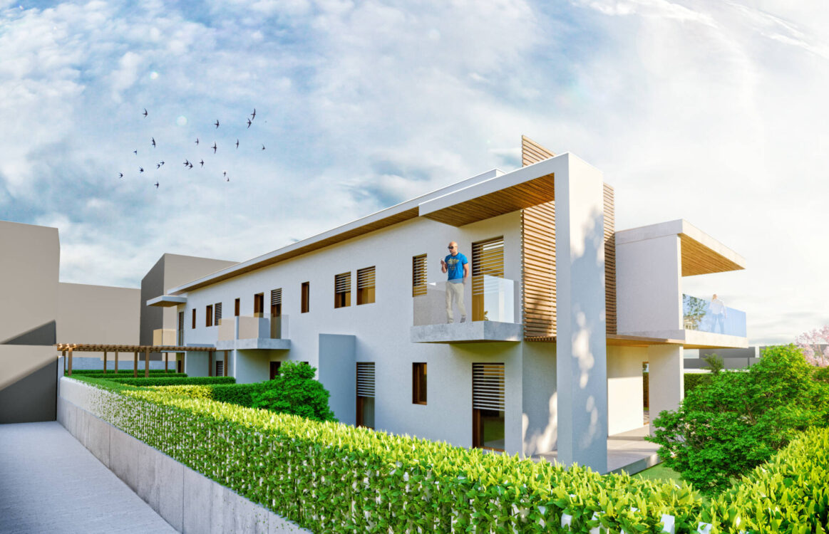 Gli appartamenti, di varie metrature, sono disposti in modo da beneficiare di vista e spazi aperti dalla zona giorno; gli appartamenti al piano terreno avranno uno spazio aperto-coperto mentre gli alloggi al piano primo terrazze coperte.
